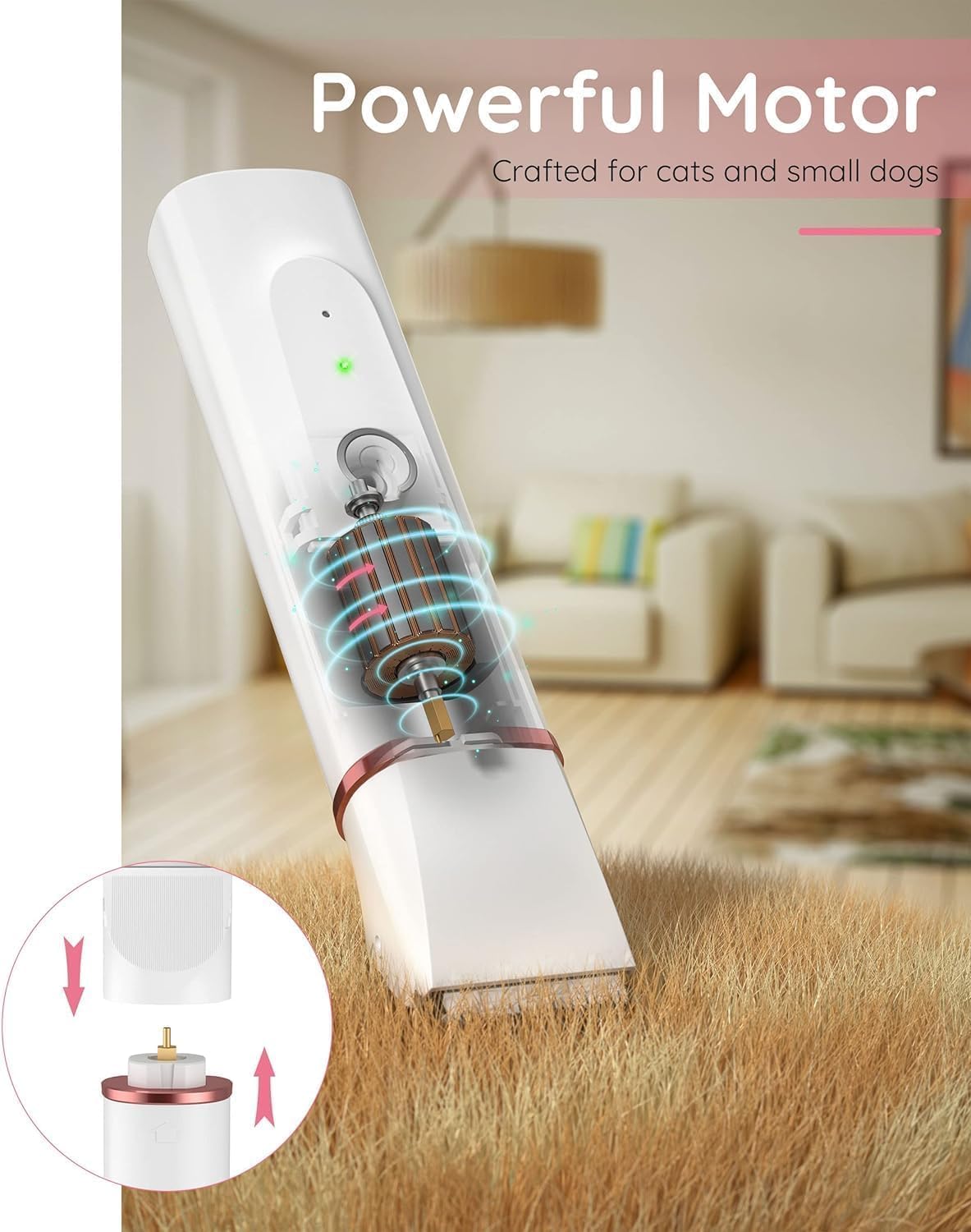 Narrow cutter head is made of stainless steel, It gently removes pet hair fur from your pets ears face paws and other harder to groom areas.