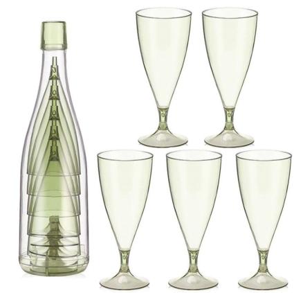 CREATIVE DESIGN: Combined 5 glasses with a storage bottle in one to greatly meet your various needs. Large bottle provides easy storage to help organize glasses together, effectively prevents dust or stains, detachable disc offers quick draining.