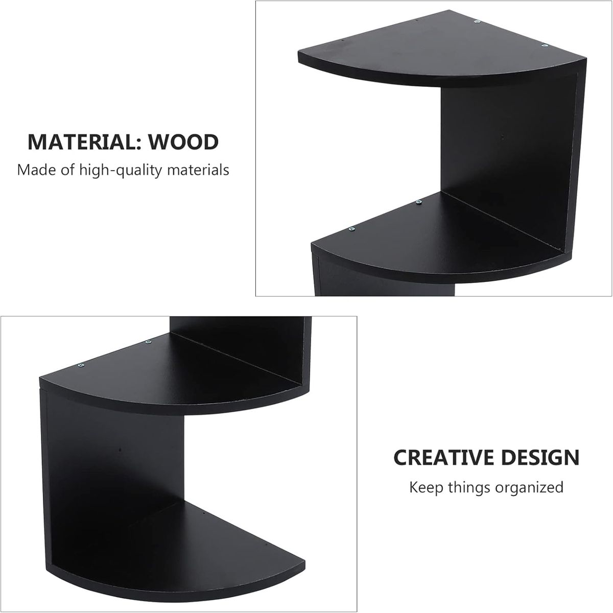 -The unique corner design of this shelf rack maximizes vertical space without taking up valuable floor area, making it ideal for optimizing storage in compact rooms. Its open-back shelves allow for easy access and display of items from multiple angles.