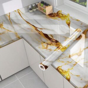 3m x 1.2m Marble Wallpaper(White & Gold)2.5mm thick