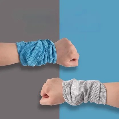 Giving a cool effect, this wristband/face guard has sun protection and absorbs sweat quickly. Perfect for those who are active outdoors.