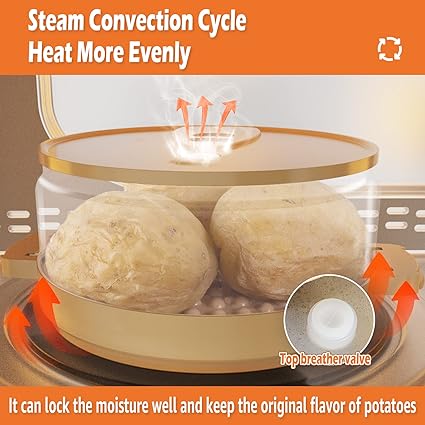 -Endless Potato Possibilities: With this kitchen stuff, you can enjoy fluffy baked potatoes in just 5-8 minutes. Whether it’s a classic baked potato with butter or a baked potato with a variety of toppings, this microwaveable potato pot makes it easy to create a delicious meal.