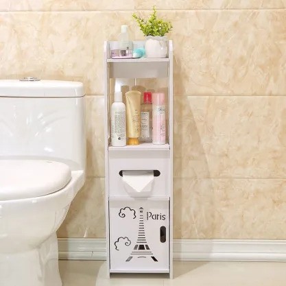 This shelf organizer features a built-in toilet paper holder.. The holder ensures that your toilet paper is easily accessible while keeping it neat and organized.