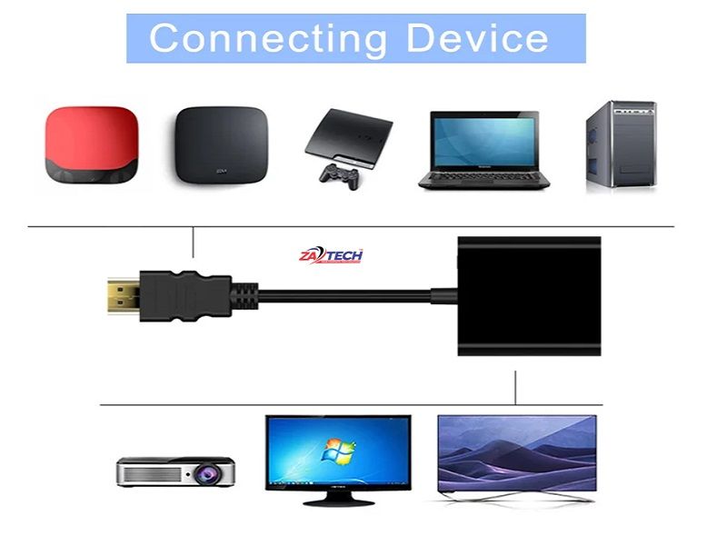 The HDMI to VGA adapter allows you to connect HDMI enabled devices such as Laptop, PlayStation and desktop to your VGA enabled device such as TV, Display/Monitor and projector.