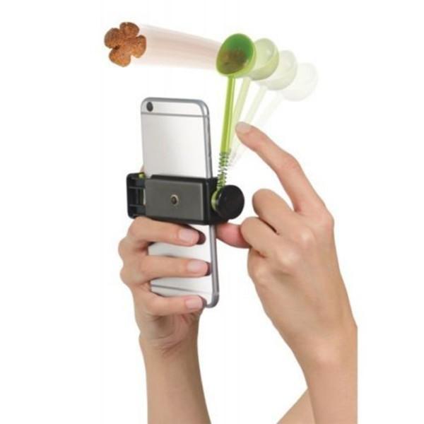 This Pet Treat Launcher can fit any smartphone and holds most of the treats.