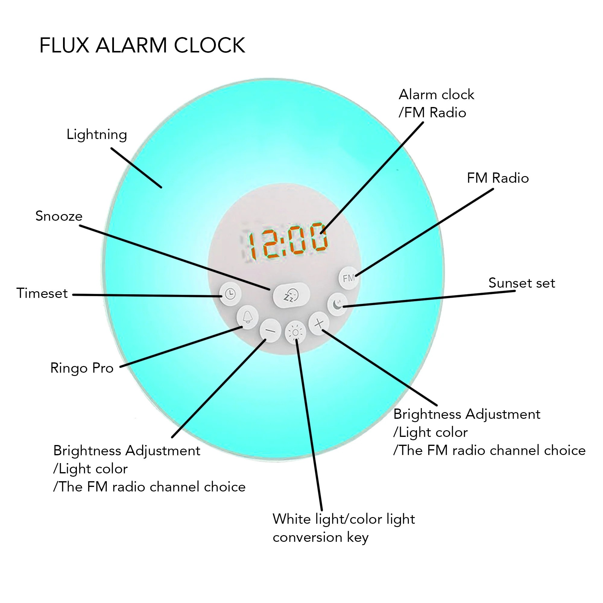MINI SUN LAMP RIGHT AT YOUR TABLE – This lamp has a function that allows it to simulate the light levels of the sun. Set your sunrise alarm and have the clock gradually brighten over a 30 minute period so you can wake up naturally even in a dark room.