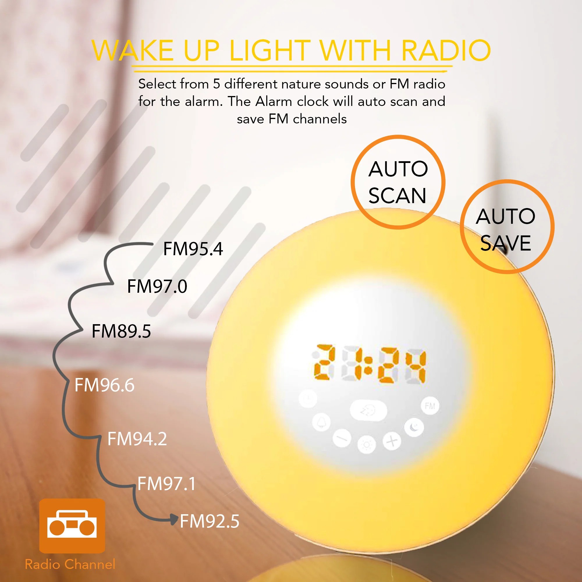 WAKE UP FEELING REFRESHED – Nothing is worse than being waken up with the traditional alarms. This Sunrise Alarm Clock uses new sounds that aim to energize you, making you ready to start the day