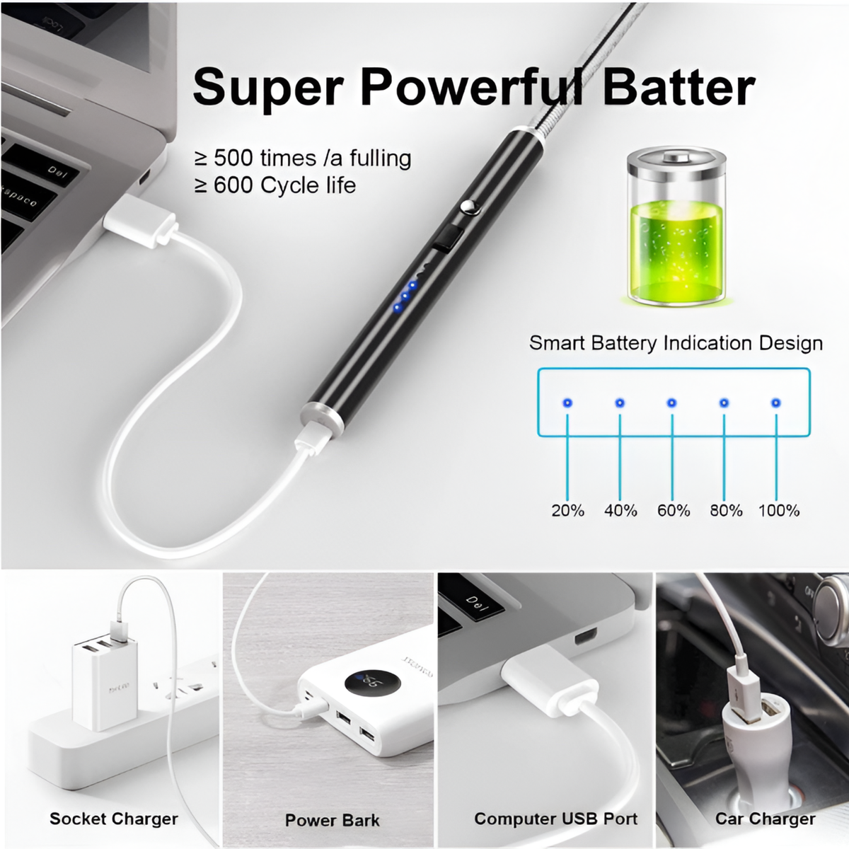 Designed for ease of use, the USB rechargeable feature eliminates the need for disposable lighters or matches. Simply connect it to any USB port to recharge, ensuring you always have a fully powered lighter at your fingertips. This eco-friendly design not only saves you money in the long run but also reduces waste associated with disposable lighters, making it a sustainable choice for environmentally-conscious consumers.